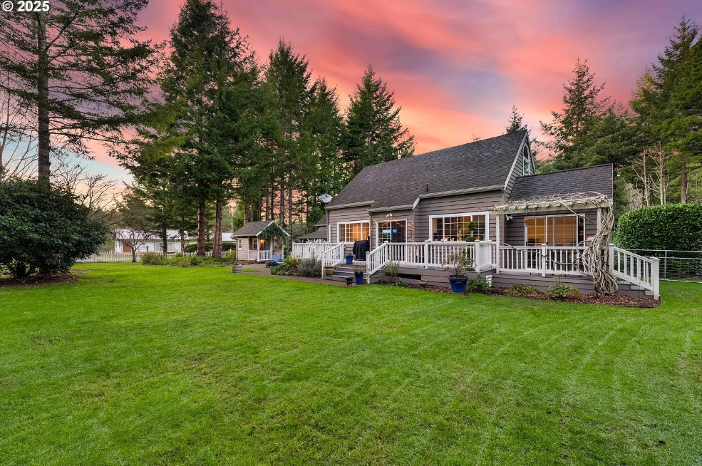 Rumah bergaya pondok yang dibangun khusus bebas asap rokok kami terletak di antara pepohonan pinus yang megah menghadap Danau Maud yang damai di North Bend. Rumah kami benar - benar dilengkapi dengan furnitur kayu pedesaan, sofa kulit lembut, meja makan kayu myrtle besar dan tempat tidur yang sangat nyaman. Nikmati pemandangan sambil bersantai di luar di kursi Adirondack di dek luas yang menghadap ke danau yang tenang. Luangkan waktu untuk menyalakan api di perapian yang ditenggelamkan di patio sambil menikmati keindahan Oregon Coast.
