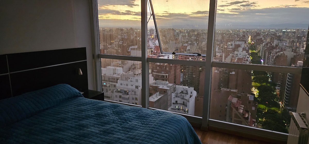 Este lugar único es moderno, cálido y relajado. Hermosa vista a Ciudad Universitaria. Piscina, asadores, gym y vista a las sierras. Zona segura con bares, restaurantes, parques y cultura cerca. Modern & cozy spot with pool, BBQ, gym & city views. Safe area with nightlife. Walking distance to downtown. Digital nomad friendly. Cochera disponible en el edificio ($15.000 x dia)
