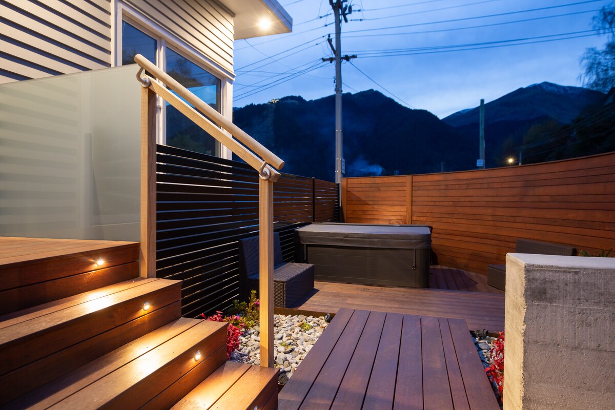 -Spectacular mountain views -Private setting. -Fully self-contained -Spacious open plan living and kitchen -Wild native birdsong. -Exclusive use wood-fired hot tub - Additional $85 -Outdoor bath (or plunge tub) under twinkling stars -5 minutes drive to 5 Mile shopping centre -20 minutes drive to Queenstown -150 m from twin rivers trail -4 bikes and helmets -Remarkable’s and Coronet peak ski fields - 30 minutes away -Washing machine, clothes drier and powder provided -Off street parking