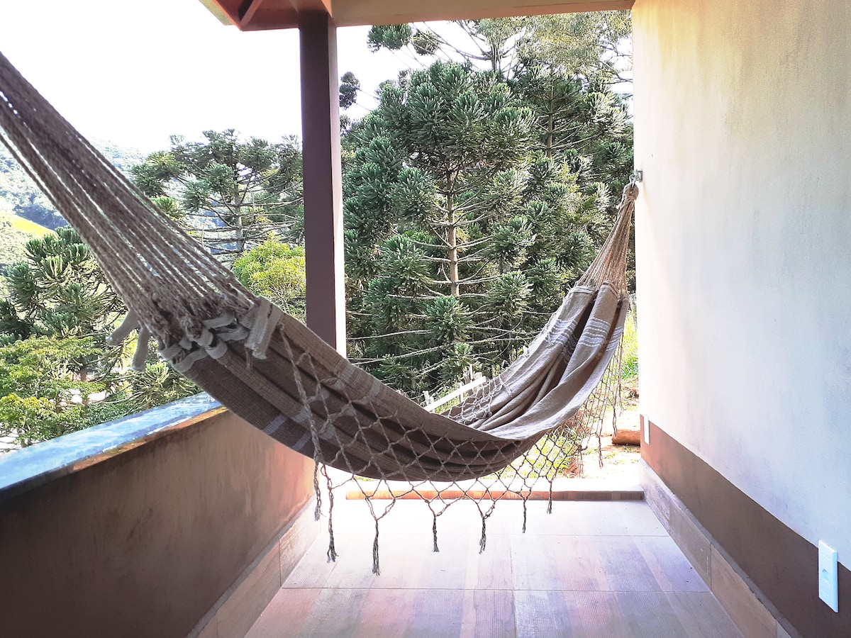 Chalé yang nyaman dan tersendiri yang terletak di ketinggian 1.500 meter dan menawarkan pemandangan panorama yang menakjubkan, matahari terbenam paling indah di wilayah ini. Kami memiliki dapur mini dengan berbagai peralatan, kompor gas dan oven, kamar mandi pribadi dengan bak mandi air panas dan whirlpool, pemanas gas luar ruangan, dek besar, dan area piknik. Sekitar 1.000 jalur MTs untuk berjalan dan berinteraksi dengan alam. Kami mengutamakan keselamatan tamu kami, dengan gerbang elektronik dan kamera di area luar.