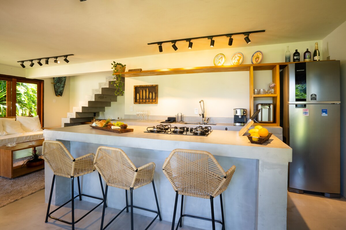CASA A SEASIDE - PE IN THE SAND, IN THE CENTER OF THE VILLAGE. TOTAL 04 SUITE DAN 05 KAMAR MANDI. SEMUA SUITE BER AC. TOTAL TEMPAT TIDUR UNTUK 16 ORANG. BIAYA FAKS 250,00 DAN LAUNDRY 100,00 KAMAR MANDI LUAR RUANGAN, TEMPAT TIDUR GANTUNG, PANCURAN LUAR RUANGAN PETECA/ LAPANGAN VOLI AREA GOURMET DENGAN WASTAFEL, KOMPOR INDUSTRI, KULKAS DAN CHURRAS