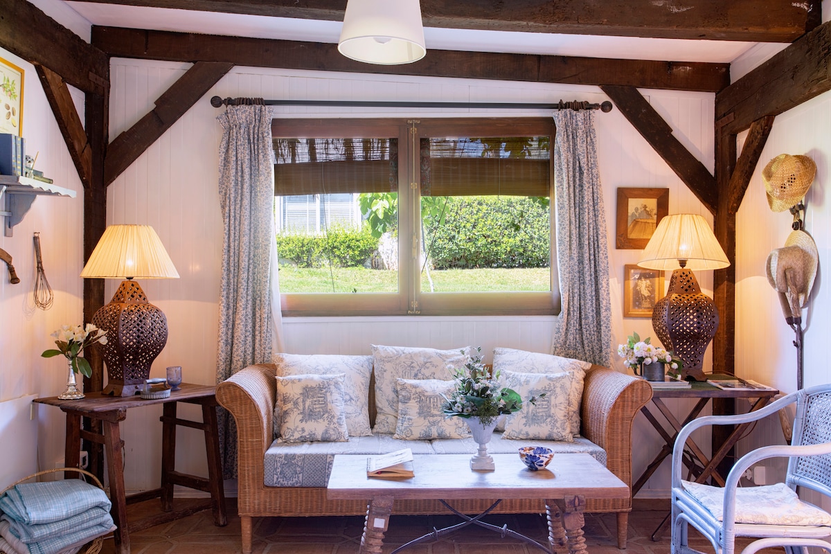 Bersihkan pondok yang luas dan dihias dengan selera tinggi di pekarangan rumah pemilik. Pondok ini memiliki 2 kamar tidur (kamar tidur dihubungkan dengan lorong tanpa pintu di antara keduanya), ruang duduk, aula, dapur, dan kamar mandi. Tempat ini memiliki terasnya sendiri dan Anda akan memiliki penggunaan eksklusif kolam renang. Pengalaman liburan yang luar biasa.