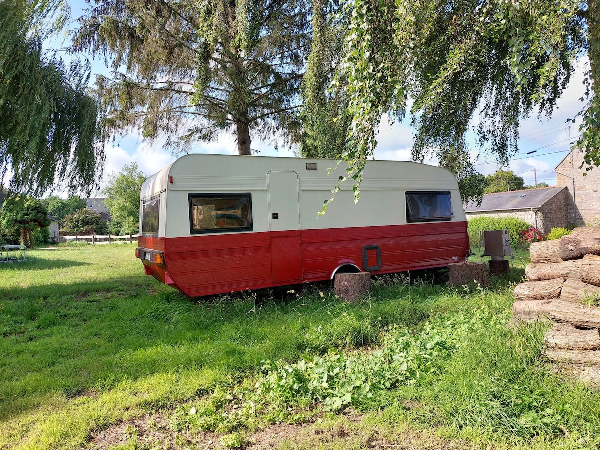 Karavan nyaman yang terletak di tepi hutan. Tanah (2500 m2) digunakan bersama dengan yurt saya (rumah utama) dan 3 tempat sewa lainnya. Manajemen ekologi (permakultur), lokasi listrik tenaga surya mandiri, toilet kering. Dengan reservasi: sarapan, makanan, pijat (lihat bagian "interaksi tamu "). Banyak jalur hiking di hutan. Terletak 10 menit dari Dinan, 20 menit dari laut dan Rance, 45 menit dari Mont St Michel, Rennes atau Brocéliande.