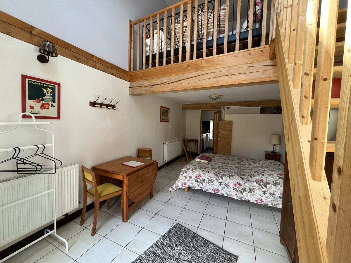 Studio duplex de 40m² au sein d'une ancienne propriété viticole. L'entrée indépendante donne sur le balcon. Il offre 1 lit double en bas et deux lits simples sur la chambre mezzanine, les espaces ne sont pas cloisonnés. La cuisinette est dotée d'une petite plaque induction, un petit réfrigérateur, un micro-ondes/grill, une bouilloire électrique et une cafetière Dolce Gusto. Douche à l'italienne. Balcon, jardin, barbecue... espace repas extérieur couvert.