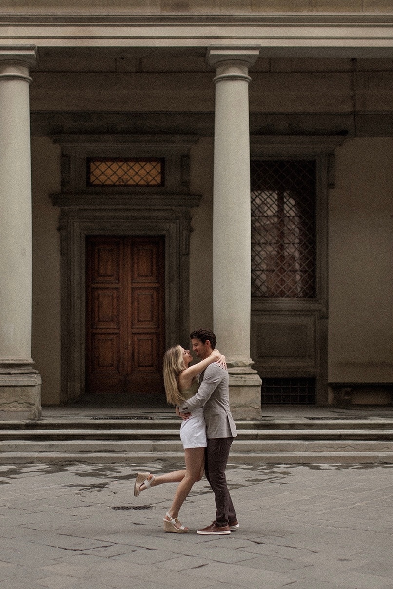 Foto spontan dan penuh emosi di Florence, latar belakang yang sempurna untuk kenangan yang tak terlupakan.