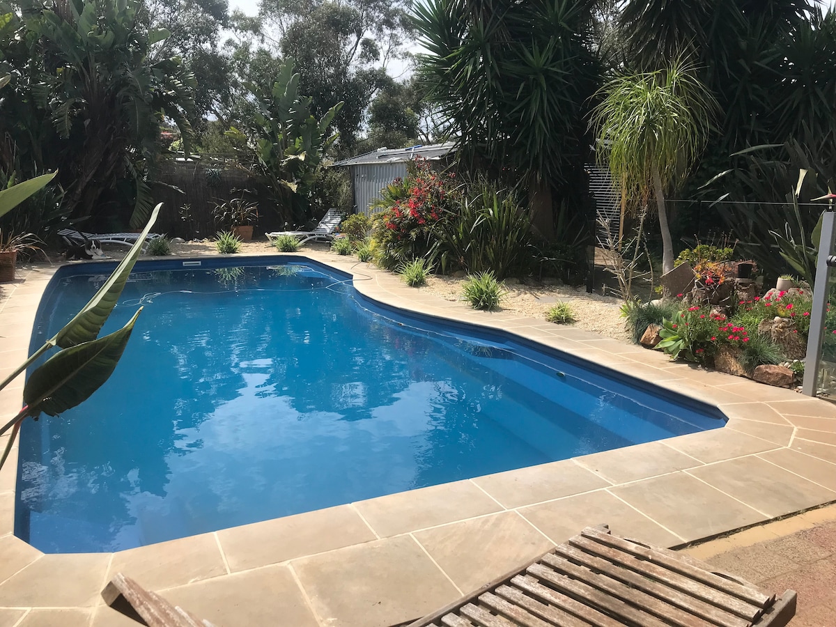 Liburan tropis menanti keluarga, keluarga besar, atau 2x keluarga Anda! Rumah keluarga 4 x kamar tidur yang nyaman (1x QB, 2 x DB, DB, tempat tidur sofa DB dengan single trundle dan kasur single cadangan di kamar tidur ke -4) rumah keluarga dengan nuansa nyaman memiliki dasar - dasar yang Anda butuhkan untuk menikmati Pulau kecil kami yang indah. Rasanya seperti surga tropis yang terpencil tanpa biaya penerbangan! 2 x ruang tamu, 2 x kamar mandi lengkap & area luar ruangan BBQ yang menghadap ke kolam renang yang menakjubkan. Berjalan kaki sebentar ke toko, kafe, bar, dermaga Cowes, dan pantai teluk yang tenang.