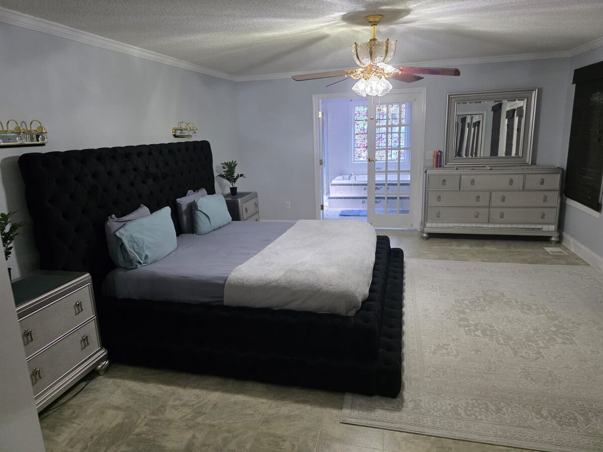 Suite yang tenang ini adalah tempat menginap yang sempurna baik untuk bisnis maupun kesenangan. Berada di tengah - tengah Peachtree City, tempat Anda bisa menikmati keindahan hutan dan kenyamanan kota modern menjadi satu. Nikmati lebih dari 100 mil jalur kereta golf kami yang terkenal, juga cocok untuk berlari, berjalan kaki, dan bersepeda. 30 mil jauhnya dari Atlanta dan 7 mil dari Trillith Studios. Pulanglah untuk beristirahat di ruang bawah tanah kami yang nyaman dengan pemandangan lapangan golf Anda yang indah.