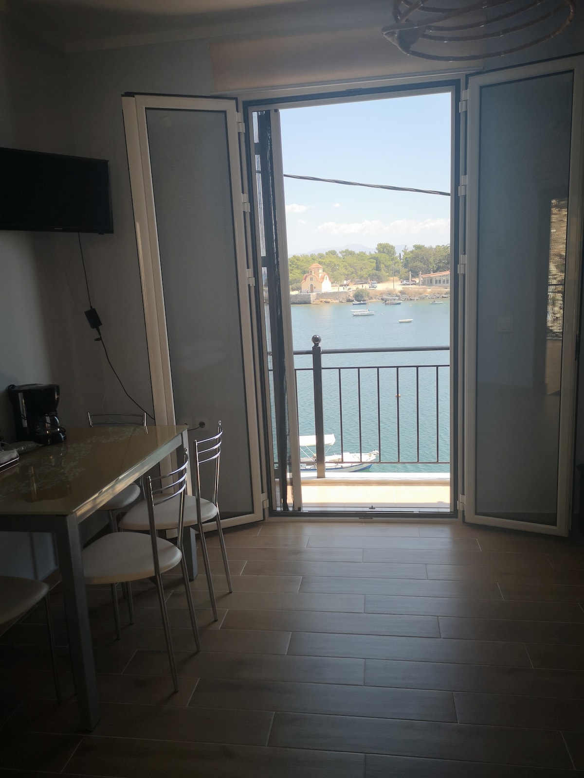 «…and on the isle of Cranae had dalliance with thee on the couch of love» (Homer, Iliad ,3rd Book, 445-446) Opposite the island of Paris and the beautiful Helen, we designed a modern mininal apartment, 27 square meters, recently renovated, airy and sunny, with the unique view of the Homeric island. -12% discount on all meals in our family restaurant (elevated ground floor) -free parking in a common area in front of the house. -illy Espresso Y3.3 coffee machine, NETFLIX, kitchen, air condition.