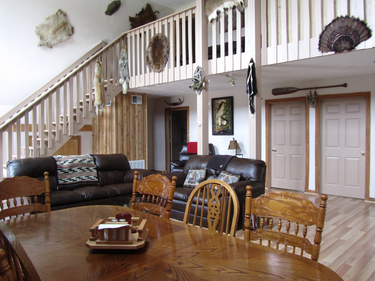 The Driftless Lodge berada di tempat yang indah Area tanpa noda WI di peternakan kami yang bekerja. Tempat tidur 9 orang, 3 lantai dengan 3 kamar mandi full, loteng besar, dek dengan pemanggang arang, area tamu seluas 2200 kaki persegi. Di luar kabin, Anda akan melihat Kuda Cat Amerika, kambing, 2 domba, kucing peternakan, dan sapi potong kami. Kami terletak beberapa mil dari sungai trout Kelas 1, Sungai Wisconsin, & akses langsung dari properti ke rute ATV/UTV, lahan umum untuk lintas alam , jalur mobil salju, dan banyak lagi.