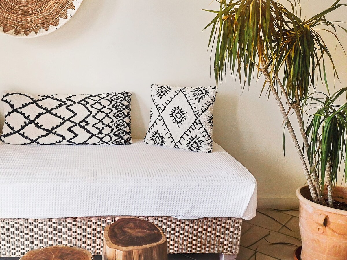 Featuring a modern equipped kitchenette, newly updated studio combines boho-chic style to and homey feeling. Location: Ground/1st floor View: Direct Sea View Size: Indoor: 31-42 sq.m. Layout: One level layout: Open plan master bedroom with en-suite dining/living/2nd sleeping area & kitchenette. Sleeps: 3 Beds: Double bed or Twins & single bed Bath: Bathroom with bathtub or shower