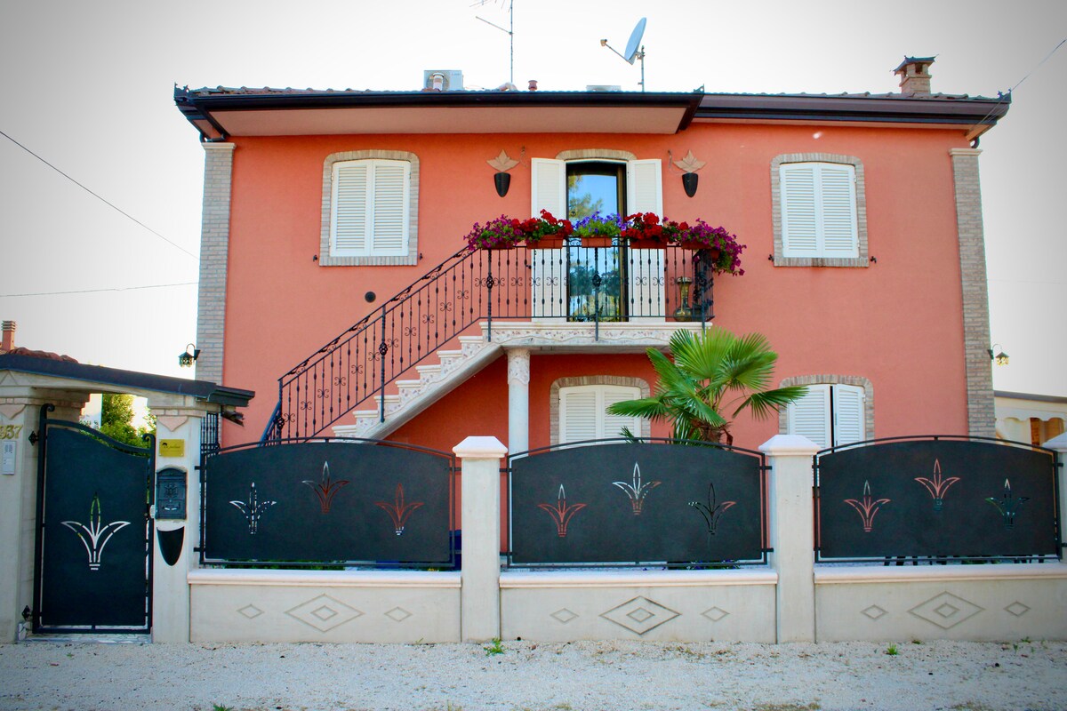 Apartemen besar dengan taman besar yang lengkap. 2 kamar tidur dengan kemungkinan menampung lebih banyak orang, kamar mandi, ruang tamu, dapur lengkap (oven, kompor, microwave, pembuat kopi), mesin cuci. Dilengkapi dengan TV 50”, pengering rambut, Wi-Fi. Rumah terdiri dari 2 apartemen, tersedia lantai dasar, di lantai pertama pasangan muda... area pedesaan yang tenang 500 m dari pusat dan tempat-tempat menarik. Trattoria yang bagus dengan masakan khas berjarak 50 m. Parkir dalam ruang dan gerbang