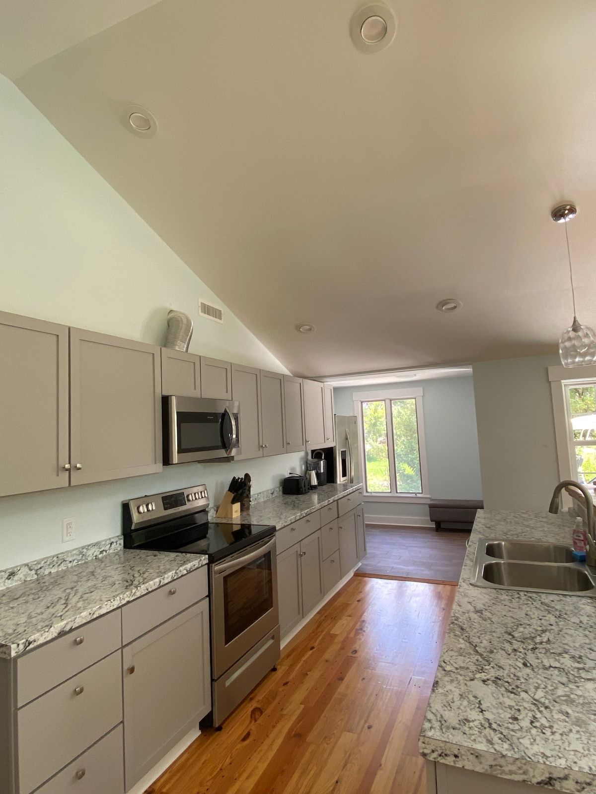 2 miles from Copper Ridge Wedding Venue. Enjoy a newly renovated interior in this 3 bedroom home in a quiet neighborhood with private master suite. Your family and pets will love hanging out, and grilling out, in the large fenced-in backyard with mature trees providing both shade and privacy. Challenge each other to a game of pool in the garage-turned-game-room! Later, your family members can retreat to their separate bedrooms and enjoy watching their own flat screen TVs. Come enjoy your stay!