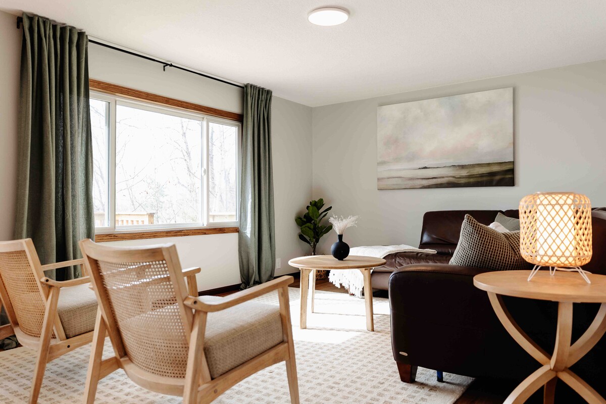 Lebih luas dari suite hotel! Lantai atas rumah 1,5 lantai yang terdiri dari 2 kamar tidur, lemari pakaian, kamar mandi, dan dapur kecil, tidak ada wastafel. Coffee table with lift top to seat 4. Ada daybed dengan trundle serta 2 tempat tidur queen. Paling nyaman untuk 4 tamu. Pintu masuk pribadi dan teras layar depan. Lingkungan tinggal yang tenang. Lokasi yang luar biasa! 1 blok dari jalan utama dan berkendara singkat ke jalur sepeda. 3 blok dari Danau Serpent! Penyimpanan garasi untuk sepeda.