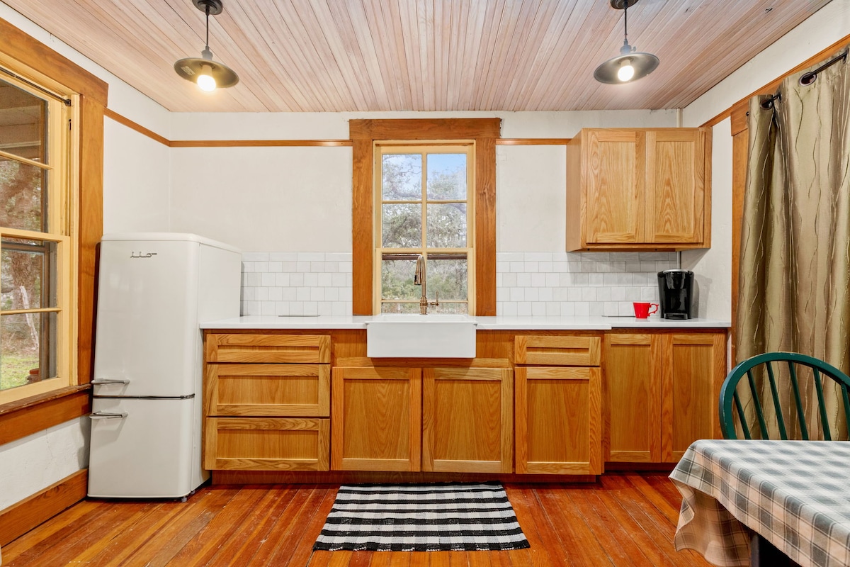 Selamat datang di The Carriage, penginapan terpencil di rumah kecil yang terletak di antara pohon ek Texas Hill Country dengan kolam renang percikan/bak mandi air panas pribadinya sendiri! Tempat ini dapat ditempuh dengan berjalan kaki dari taman truk makanan & kedai kopi dan dekat HEB dan banyak restoran. Hanya beberapa menit dari The Rim, Six Flags dan Boerne dan hanya 20 menit dari River Walk, SeaWorld & bandara. - Patio pribadi - Kasur Ungu King - Tempat tidur siang beroda diperluas ke raja lain - Melempar, lemparan yoga, dan perapian