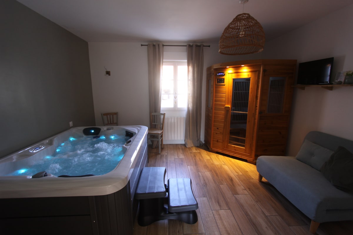 ✨Ingin merasakan Momen Ajaib bersama Pasangan atau Teman?❤️ Manjakan diri Anda dengan liburan abadi di Spa Pribadi Besar dengan suasana romantis di bawah Langit Berbintang, ajakan nyata untuk bepergian di daerah tropis🌴 💦Bersantai di Area Kesehatan yang luar biasa dengan • Bak Mandi Air Panas XXL - Sauna • Smart TV 🌿Terletak di dalam dengan pemandangan taman, nikmati masa inap yang tak terlupakan di musim panas dan musim dingin 🏡The Lodge & Sweety❤️Spa, rumah batu indah yang terletak di pedesaan yang tenang