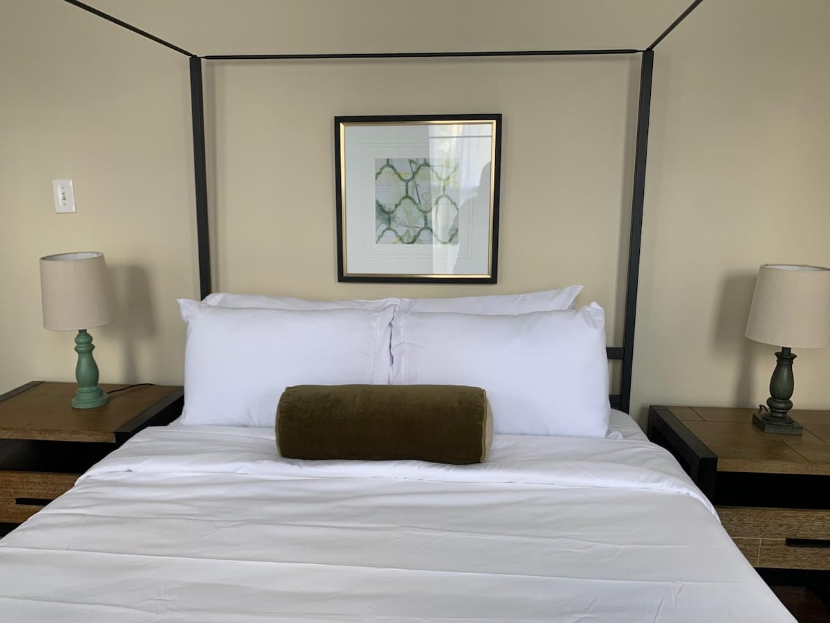 Kamar yang indah, nyaman, dan cerah dengan sofa sectional berbentuk L yang super nyaman. Dapur Makan yang sangat bersih dan luas dan lengkap dengan mesin cuci piring, oven, microwave, pembuat kopi biasa dan K - Cup, gelombang mikro, Pemanggang roti, Panci, Panci, Peralatan, dan Peralatan Perak yang semuanya disediakan. Apartemen ini mencakup (2) TV Layar Datar 43", streaming hulu - Live, Amazon Prime, Disney Plus. Selain itu, area meja kerja kecil disediakan Akses mesin cuci/pengering gratis dan parkir gratis, (sewa jangka pendek tersedia).