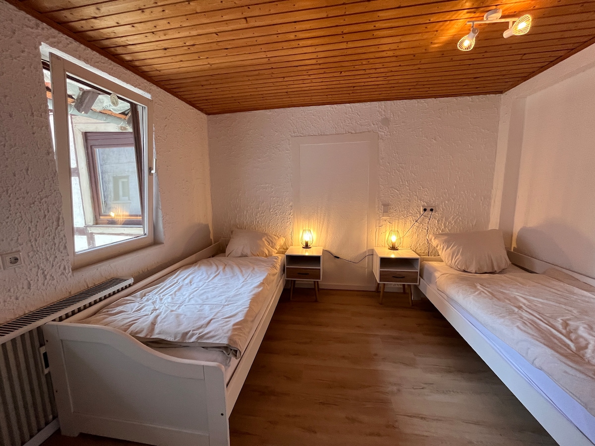 Apartemen yang menawan, cerah, dan nyaman dengan papan lantai tua terletak dekat dengan pusat kota di salah satu lembah terindah di Odenwald. Pemandangan yang luar biasa bisa dijelajahi dengan berjalan kaki, dengan sepeda atau sepeda motor. Anda bisa mulai langsung dari pintu depan. Perasaan liburan seperti di Toskana, namun segala sesuatu di sini masih hijau indah dengan padang rumput dan padang rumput. Tamasya: Rodenstein Ruins & Falling Bach. Restoran, toko roti, apotek, dan supermarket dapat ditempuh dengan berjalan kaki.