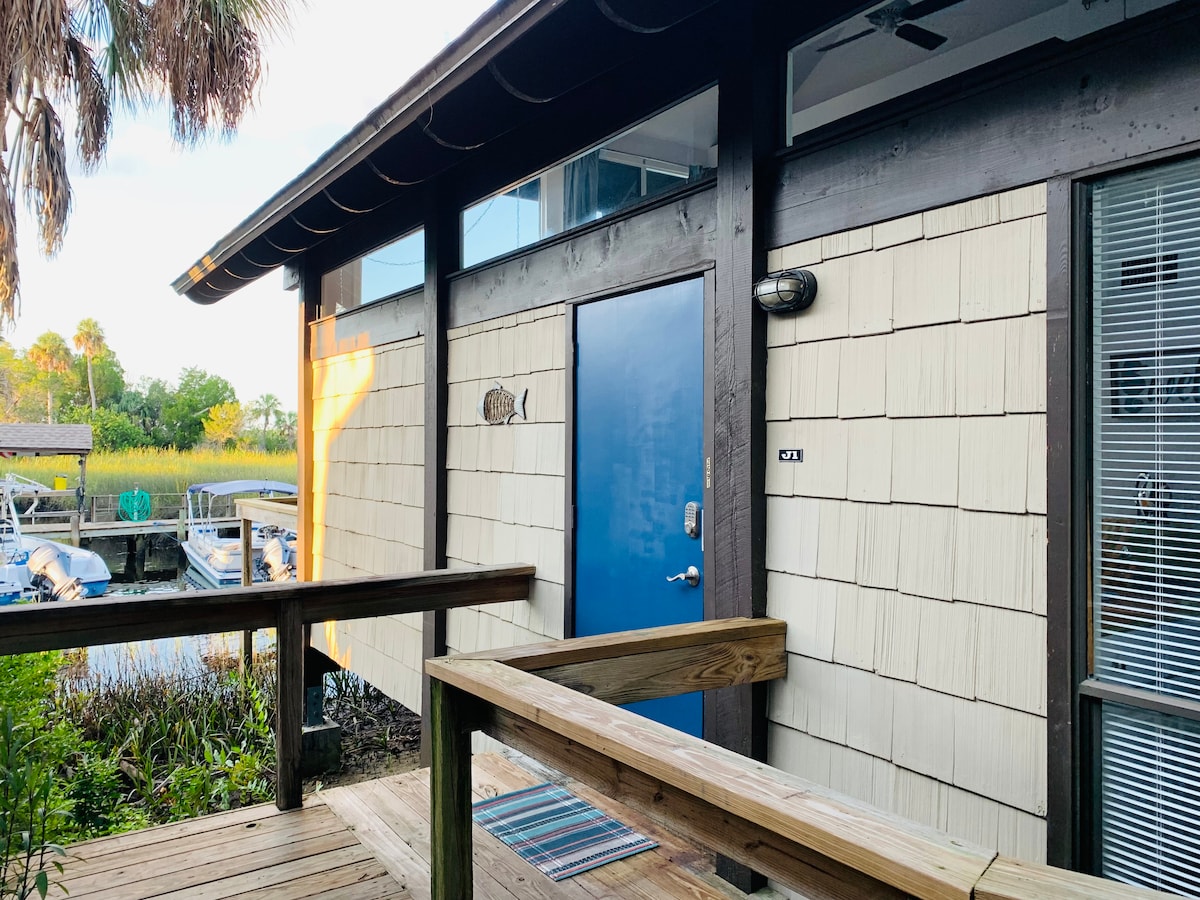 Updated guest house close to water, boat ramps, golf, fishing (access to Gulf of Mexico/scalloping) manatee sanctuary, Three Sisters Springs, restaurants, gulf beach. Parking for trailers/boats, access to water/Kings Bay, bring kayaks/SUPs, use our bikes, quiet waterfront neighborhood for walking/biking. Walking distance to Plantation Inn for golf, fishing trips, scuba, kayak/boat rentals/tours. This is one of two units on property. For 2BR home, search for Airbnb listing number 34363654.