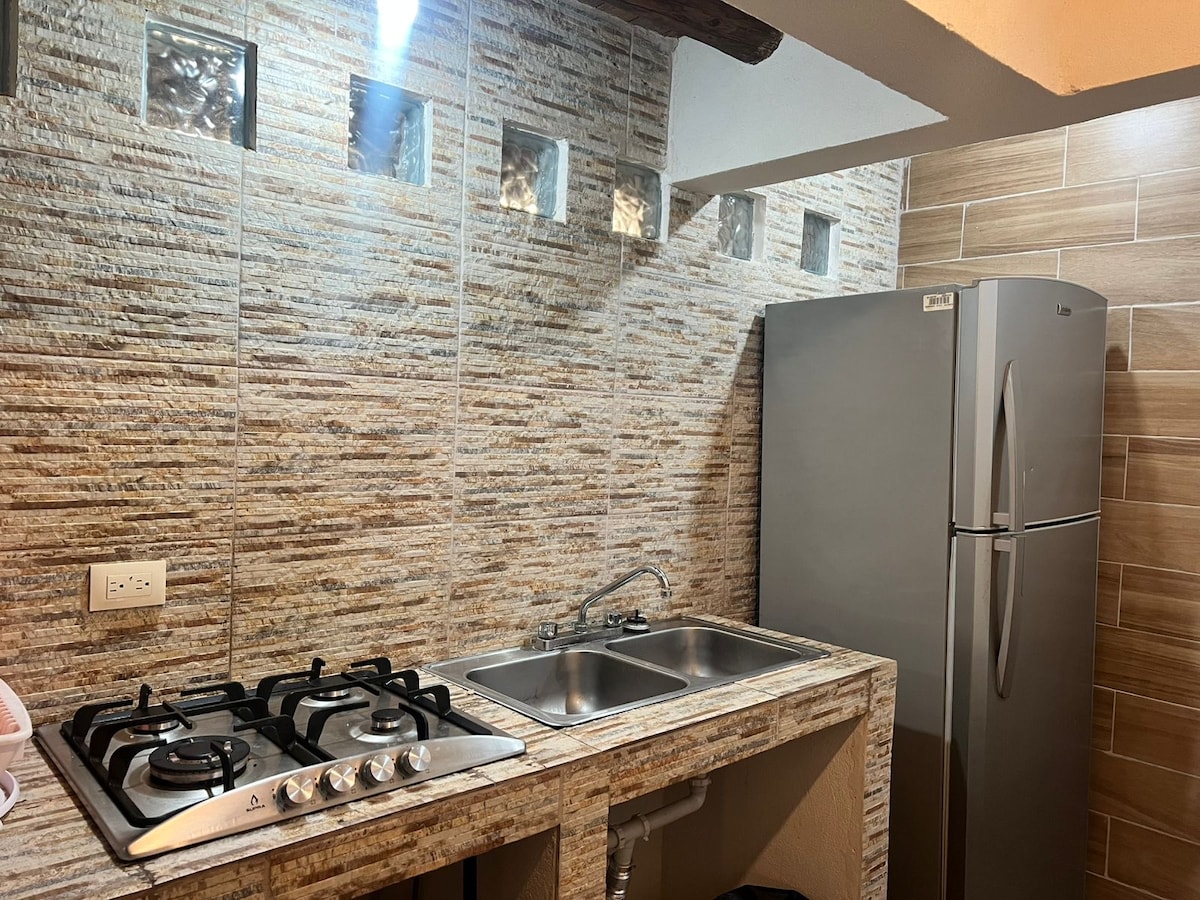 Apartemen kecil namun sangat nyaman dengan segala kebutuhan Anda untuk menghabiskan beberapa hari yang menyenangkan. Dengan kapasitas hingga 6 orang, tempat ini memiliki internet, kipas angin langit-langit modern dengan speaker Bluetooth, 2 kamar tidur dengan TV kabel dan AC panas/dingin mini-split, dapur kecil dengan peralatan dapur, minibar, microwave, kamar mandi kecil, dan di area terasnya terdapat barbeku, area api unggun, setengah kamar mandi, selain kolam renangnya (tidak dipanaskan) khusus untuk tamu akomodasi ini.