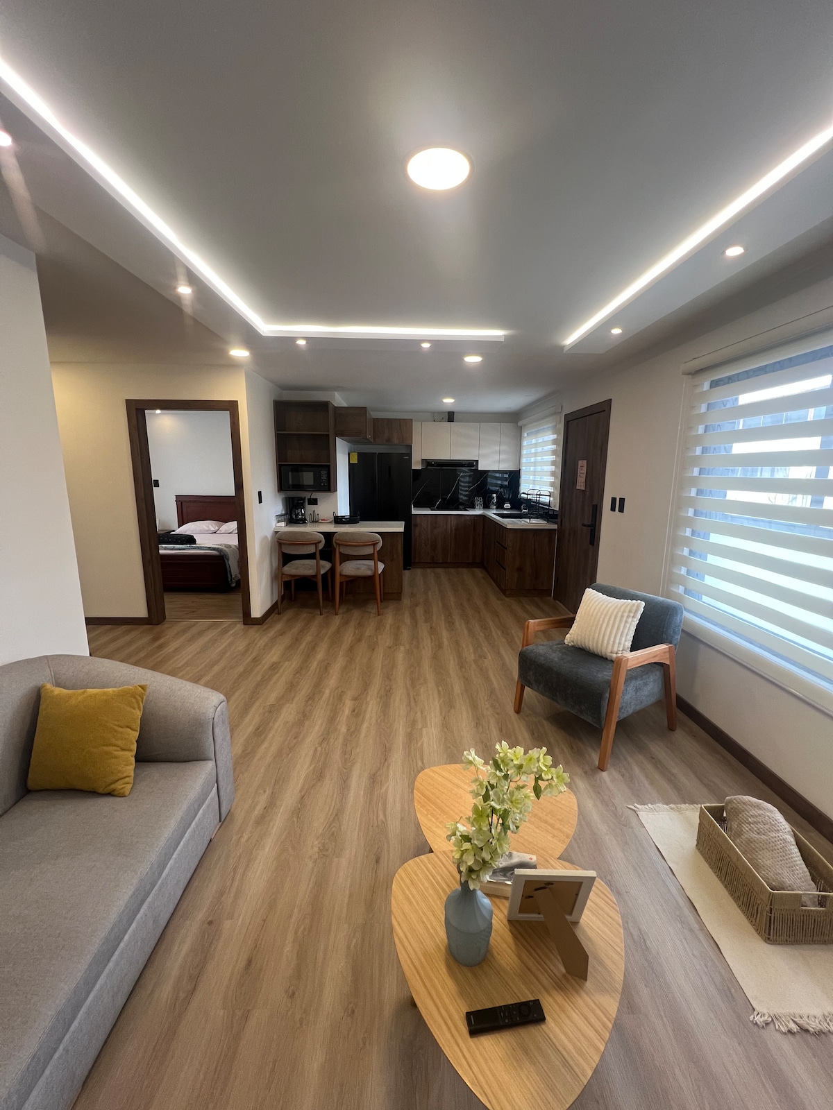 Vive una estadía de lujo en este moderno apartamento completo en el exclusivo edificio TERRAZZA. Perfecto para parejas, viajeros o estancias de trabajo! Disfruta de 1 dormitorio elegante, baño completo, cocina bien equipada, sala acogedora, parqueadero privado, acceso gratuito al gimnasio y cuenta con lobby 24/7. A 5 minutos del centro histórico y zonas comerciales, a 1 cuadra de la Av. 10 de Agosto. ¡Confort, lujo, estilo y la mejor ubicación en un solo lugar! Te esperamos