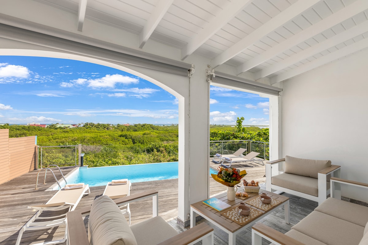 Bangun setiap pagi menghadap Pulau Pinel, di vila modern yang bermandikan cahaya, dengan kolam renang pribadi dan lingkungan yang tenang dan hijau. Villa ini terletak di kediaman Horizon Pinel yang menghadap ke Île Pinel, Petite Clef, Orient Bay, Tintamarre, dan Saint Barthélemy. Tempat ini menghadap ke cagar alam Cul de Sac Bay yang luar biasa dan terkenal, yang terkenal dengan populasi kura - kura, pari, dan pelikannya. Teluk yang dangkal dan selalu tenang sangat ideal untuk snorkeling