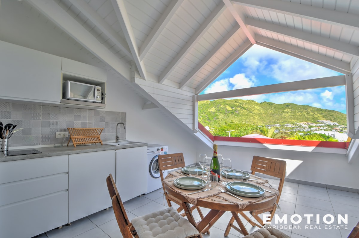 Cicipi keanggunan dupleks ini yang benar - benar direnovasi dan ber - AC di tempat tinggal pribadi dan aman dengan kolam renang Tempat ini memiliki 2 kamar tidur termasuk satu di lantai atas, kamar mandi dan dapur terbuka ke ruang tamu lengkap dengan pemandangan Pulau Pinel dan Tintamarre. Terletak 350 m dari dermaga Pinel dan 5 menit dengan mobil dari teluk Anse Marcel, Grand Case atau Baie Orientale. Anda dekat dengan semua fasilitas seperti area perbelanjaan Hope Estate.