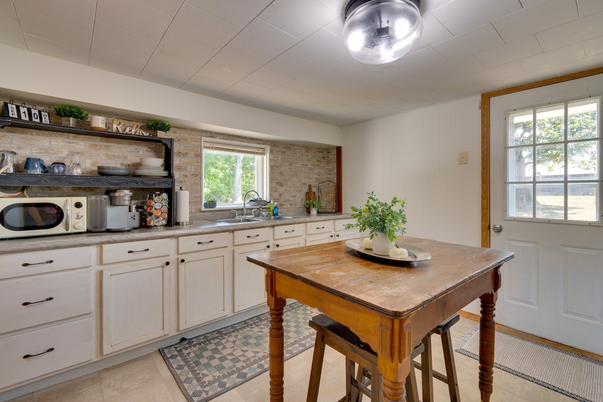 Menjauhlah dari segalanya saat Anda menginap di Farmhouse 1902 yang diperbarui dengan indah ini dengan kolam 5 Acre Anda sendiri untuk memancing, berkano, berenang! Masak ikan Anda di tepi kolam di perapian luar ruangan pedesaan atau di atas pemanggang arang. Bersantai di dekat api unggun atau keluar dengan kano. Ambil pelampung di kolam yang diberi makan musim semi untuk menyejukkan diri dan berenang. Atau ambil beberapa tiang pancing dan cobalah untuk menangkap ikan bass atau mola - mola untuk menggoreng ikan. Ini adalah tempat yang sempurna untuk beristirahat dan bersantai selama beberapa hari.