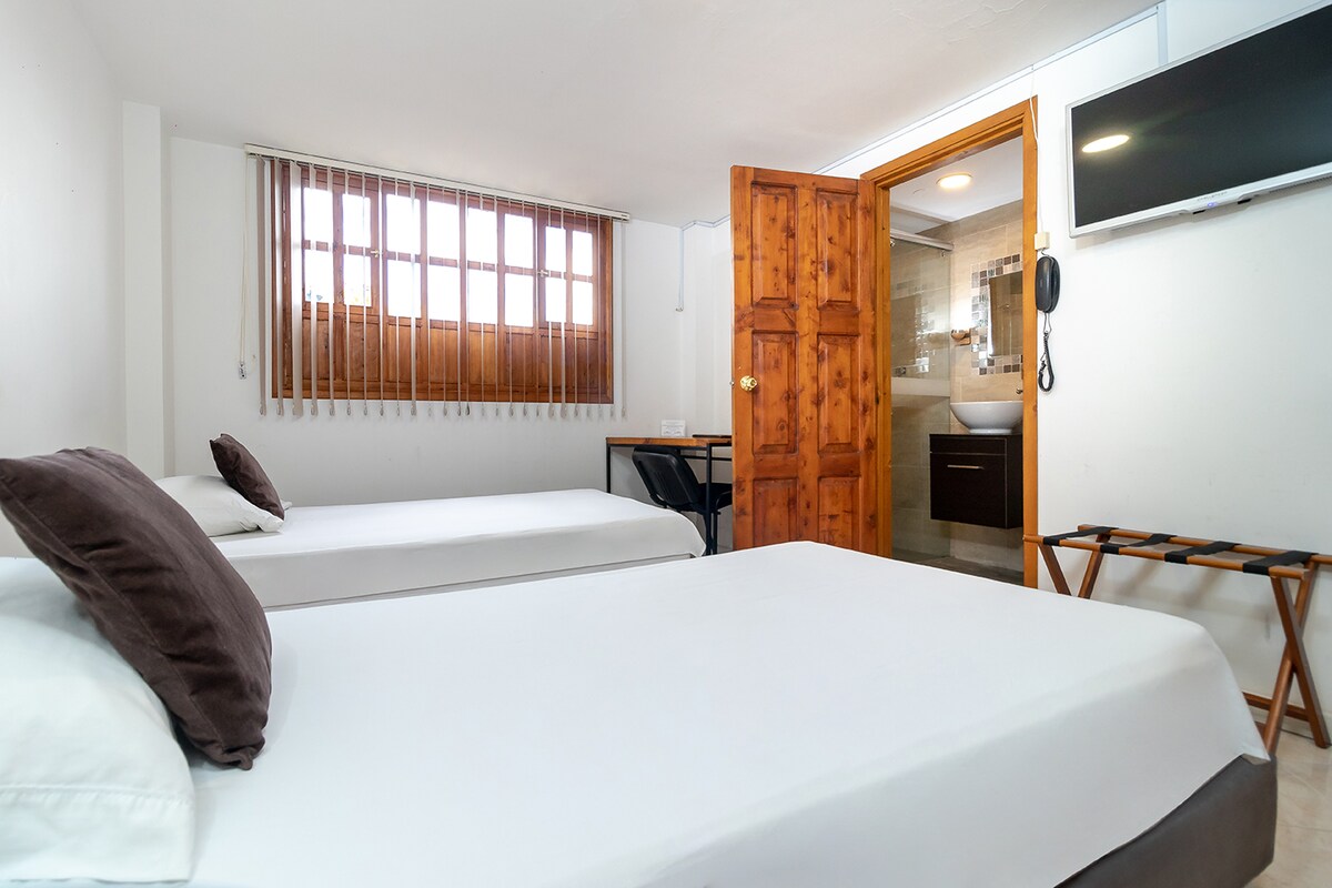 Tempat ini berlokasi dalam 10 hingga 15 menit dari lokasi seperti bandara, pusat bersejarah, kedutaan besar Amerika, taman botani, Virgilio Barco, dan beberapa taman rekreasi dan pusat perbelanjaan. Tempat ini memiliki area bersama yang luas dan resepsionis yang elegan, setiap kamar benar - benar pribadi dengan kamar mandi sendiri dan dilengkapi dengan semua kenyamanan. Kami memiliki staf yang sangat membantu dan penuh perhatian untuk menjawab pertanyaan Anda. Kami menunggu Anda!