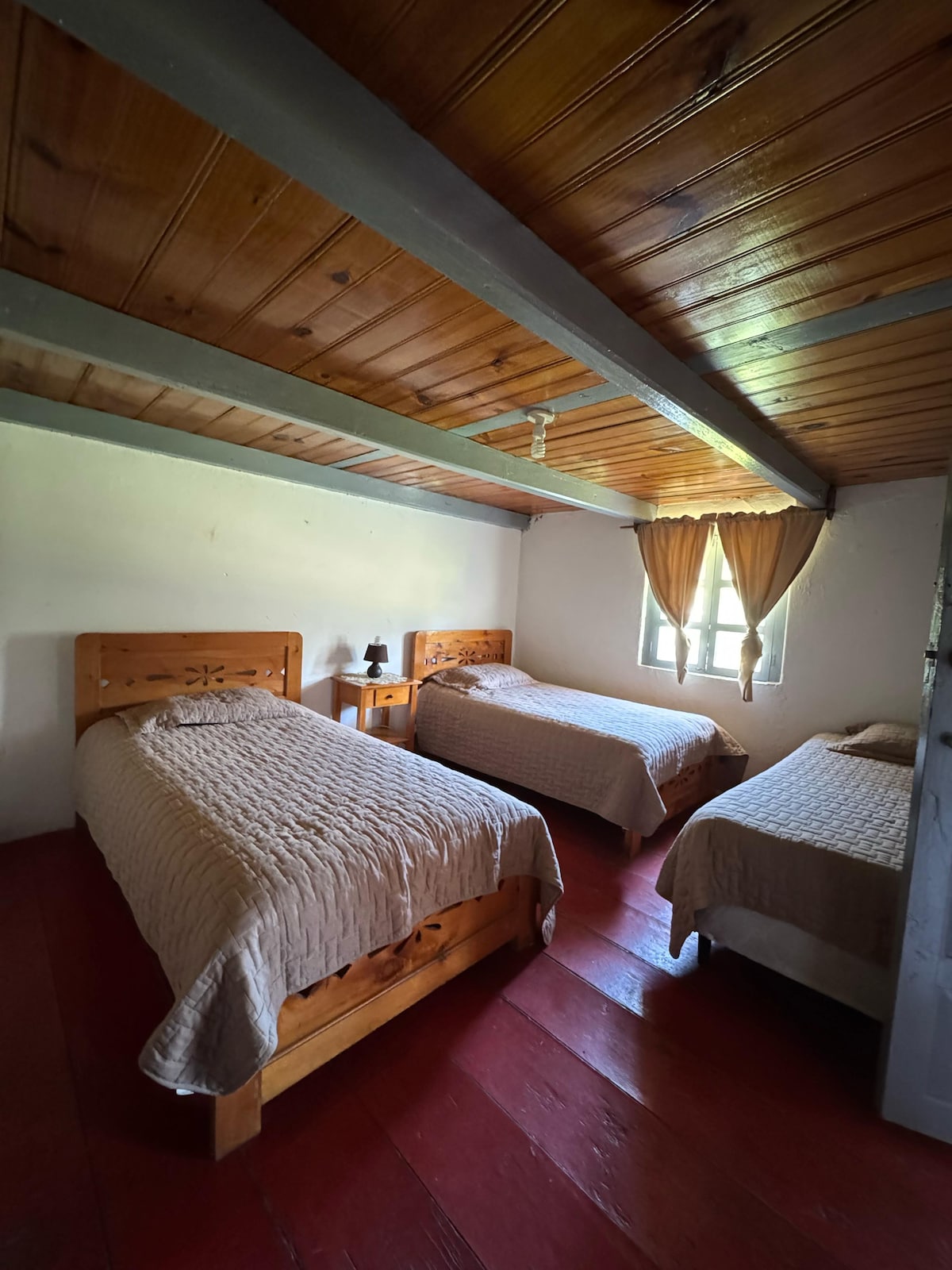 Villacabaña, refugio acogedor en la parte más alta de Aguacatán. Rodeada de áreas verdes y majestuosos pinabetes, ofrece conexión total con la naturaleza y vistas increíbles. Ideal para 3 huéspedes, cuenta con 1 habitación, 2 camas, TV, cocina equipada con chimenea y baño externo. Disfruta de fogatas bajo las estrellas en un ambiente perfecto para experiencias familiares y descanso auténtico.