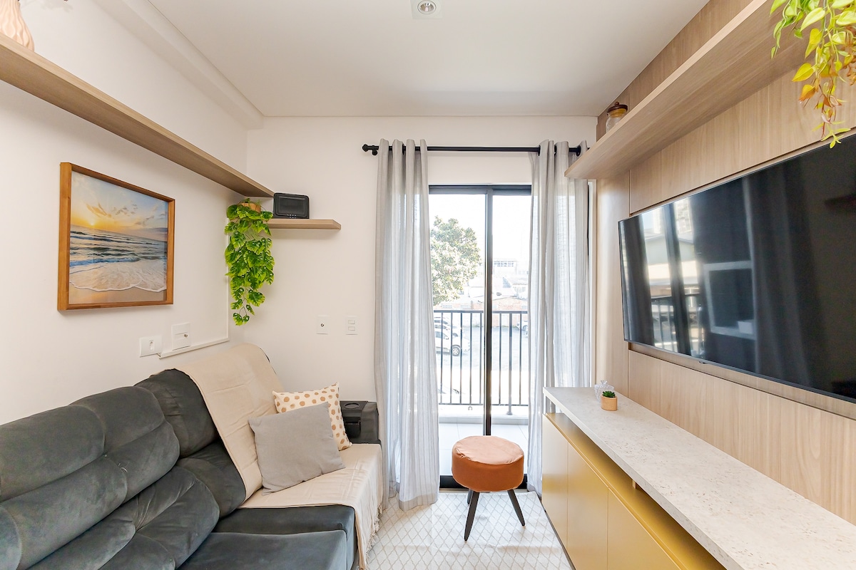 Studio yang baru direnovasi dan didekorasi di Centro Cívico dengan: AC di seluruh lingkungan, dapur lengkap dan TV pintar. Gedung ini menawarkan kolam renang yang dipanaskan, pusat kebugaran, teras panorama, sauna, perpustakaan mainan, jacuzzi dan laundry (berbayar) UNTUK KOLAM RENANG BERIKAN SERTIFIKAT. Ideal untuk 2 hingga 4 orang, kami menyediakan Seprei handuk baris pertama Lokasinya bagus, dekat dengan pusat perbelanjaan, pasar, restoran, dan toko roti dengan akses mudah akses saat menjelajahi kota Parkir berbayar di lokasi.