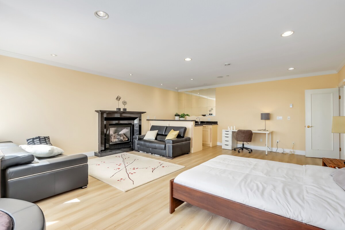 Tepi laut dengan pemandangan Howe Sound/Coastal Mountains yang menakjubkan (di atas foto). Dekat dengan kota, feri, restoran. Berjalan kaki 10 menit melalui hutan kami mengarah ke pantai kami yang bisa berenang. Suite baru direnovasi dengan sisipan perapian batu, tempat tidur queen, tempat tidur sofa baru, pintu masuk tanpa kunci, dan dek pribadi (perlengkapan tempat tidur dan handuk disediakan). Dapur kecil memiliki microwave, kulkas kecil, pembakar tunggal infra merah, dispenser air, pembuat kopi/espresso, piring, tidak ada wastafel (kami mencuci piring untuk Anda). BL#00000625