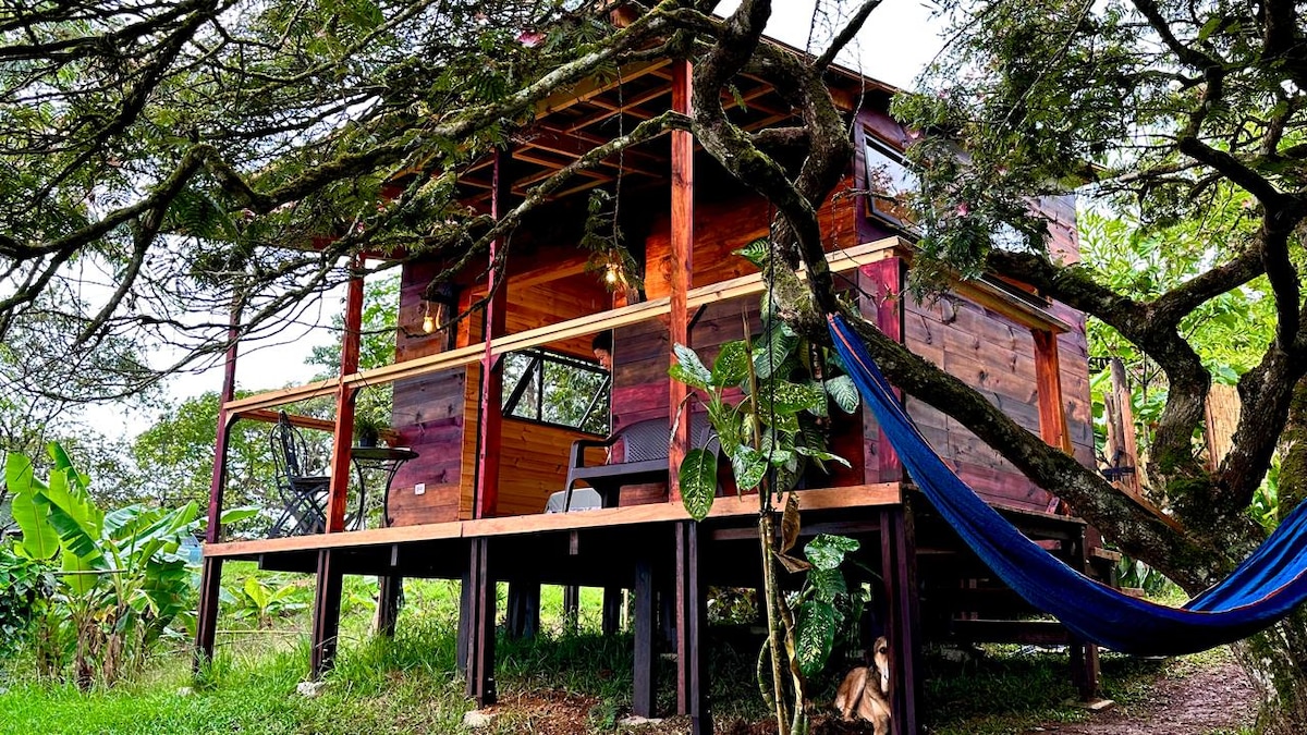 Pondok independen, ideal untuk 2 orang, dalam iklim sejuk dan dikelilingi alam. Sangat cocok untuk bersantai, dengan perapian, Wi-Fi, TV, jaring gantung, dan taman rahasia yang menarik burung dan kupu-kupu. Jika beruntung, Anda mungkin bisa memetik buah alpukat segar dari pohon. Ruang yang damai untuk tamu yang tenang. Jika Anda mau, Anda bisa menikmati percakapan yang menyenangkan dengan tuan rumah.