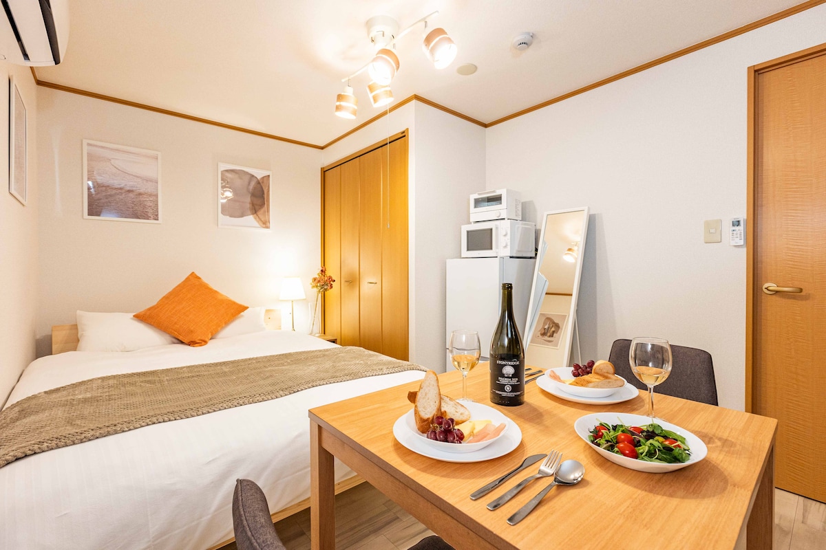 ◆Location: 1 subway stop from Namba, Dōtonbori, and Tennōji. 180m from Daikokucho subway, 2mins walk. ◆Facilities: Two double bedrooms Separate living area, kitchen, and bathroom. Fits up to 4 guests. ◆Transport: Access to Midosuji, Yotsubashi, JR Loop, and Nankai Line. Kansai Airport: 45 mins on Nankai Line, no transfers. Universal Studios: 25mins by JR. ◆Notes: 1 free towel/guest. Extras 200 yen. No cleaning during stay. Quiet after 10 pm. No smoking indoors.