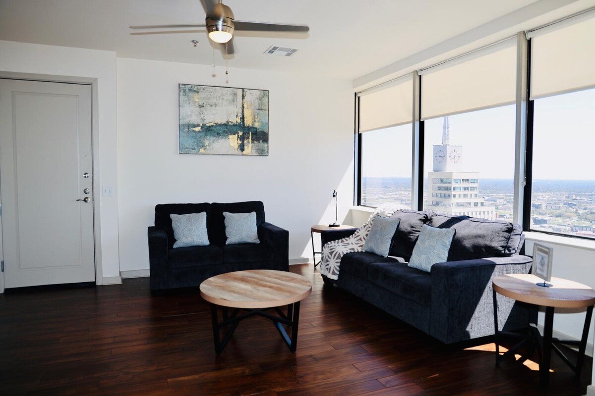 Uptown Dallas 2BR dengan Kolam Renang, Hewan Peliharaan, Pemandangan Skyline