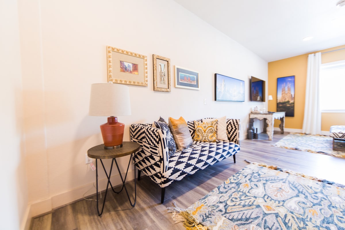 Terletak di Urban Union Downtown Arlington, The Rambler Inn menawarkan liburan mewah untuk hingga empat tamu. Suite satu kamar tidur bertema musik ini dilengkapi tempat tidur King mewah, kamar mandi ensuite, dan balkon pribadi untuk bersantai dengan tenang. Lounge yang menarik ini mencakup tempat tidur sofa mewah, dan dapur gourmet dengan sebuah pulau sangat cocok untuk bersantap dengan penuh gaya. Nikmati fasilitas modern seperti mesin cuci dan pengering, parkir gratis di jalan, dan akses ke toko dan restoran kelas atas di lantai bawah.