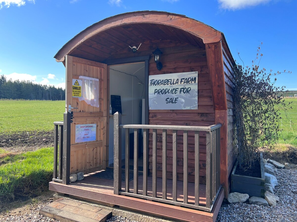Chalet a - frame kami terletak di kebun peternakan Sheriffston. Tempat ini berperabot lengkap untuk katering mandiri, basis yang sangat baik untuk menjelajahi sisi Moray dan Moray di Aberdeenshire. Tempat ini dengan nyaman terletak dalam jarak pendek ke Elgin (pusat kota bersejarah), pantai yang menakjubkan dan jalan - jalan pantai, jalur sungai, jalur bukit, dan mengikuti Whisky Trail.