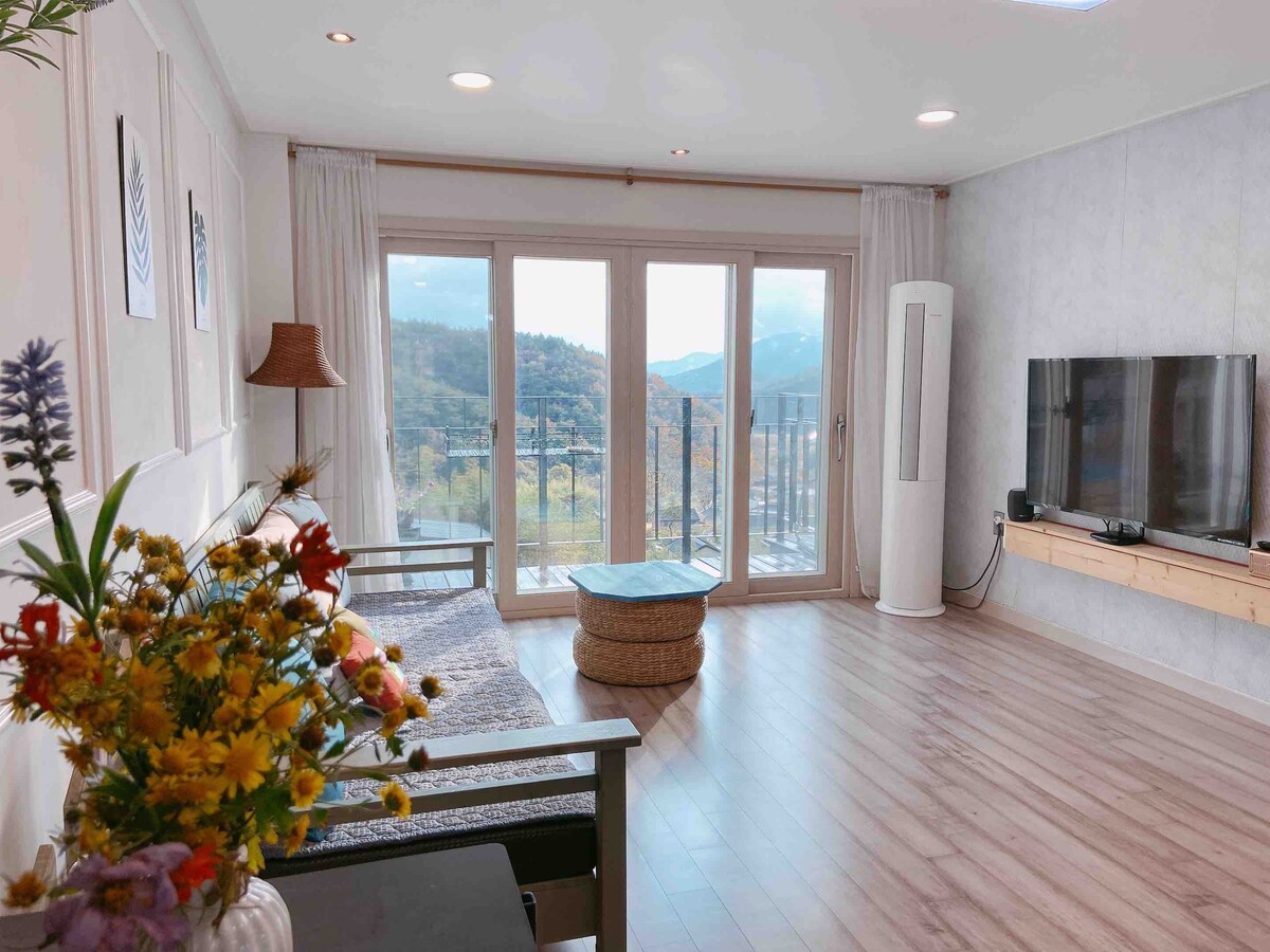 Pension dengan pemandangan Chuwolsan yang indah di Damyang, nikmati kehidupan pedesaan yang santai di hutan jauh dari kota yang sibuk:) Lantai 1 dan 2 memiliki luas lantai yang sangat luas sekitar 50 pyeong, Kuil Gangcheon, Naejangsan, Gamagol berjarak 20 menit dengan mobil. Selain itu, Metasequoir Road, Provence, Danau Damyang, dan Yongmaru Promenade berjarak 10 menit dengan mobil. * Diskon tersedia untuk reservasi hari kerja. Silakan hubungi kami untuk pertanyaan tuan rumah.