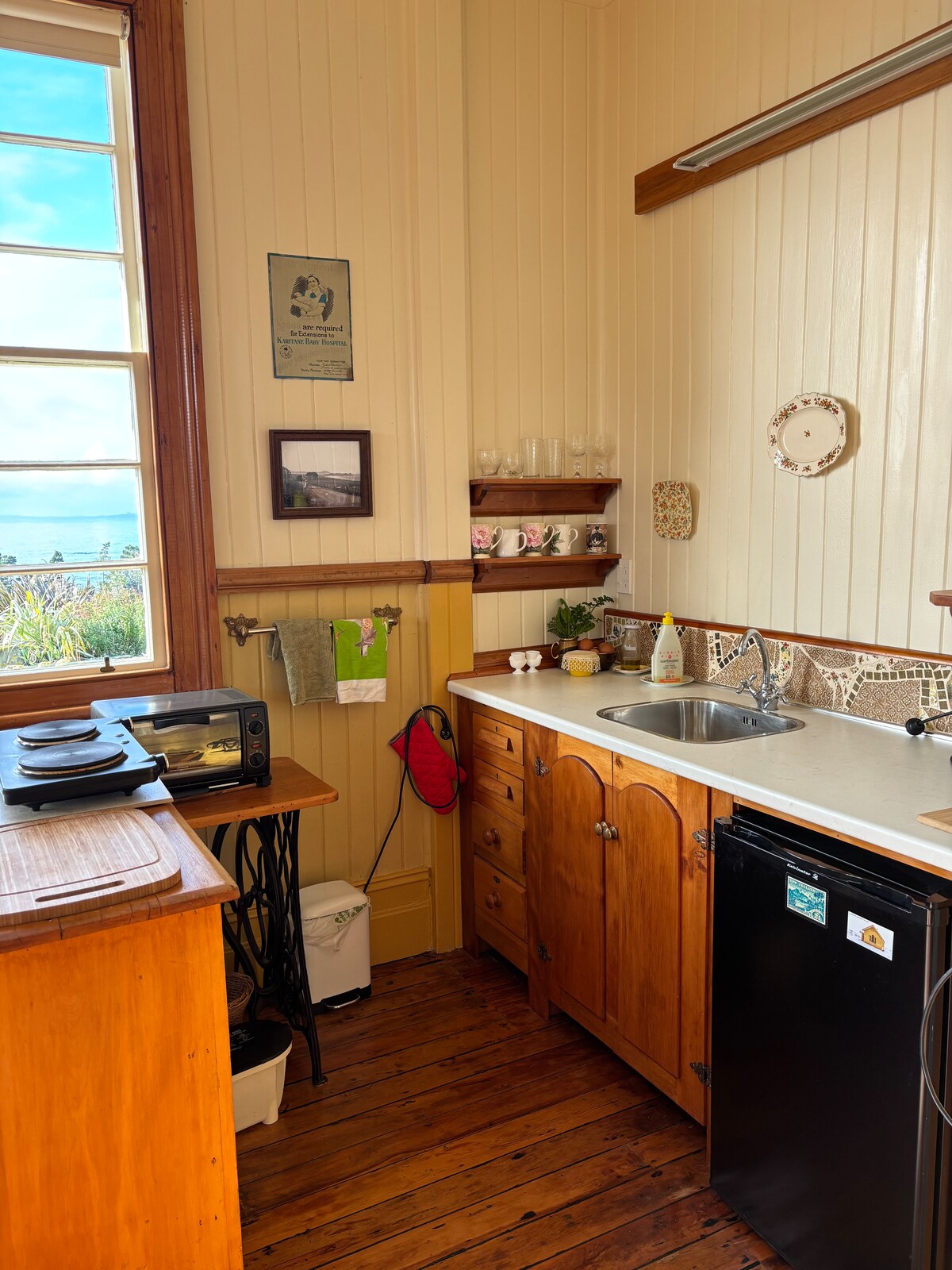 Studio unik kami yang berdiri sendiri adalah sekolah kecil yang bersejarah dan direnovasi sekitar 30 km ke utara Dunedin dan dekat dengan desa Karitane. Sekolah ini memiliki segala yang Anda butuhkan untuk menginap dengan hangat dan nyaman. Ada buku dan permainan untuk Anda gunakan. Kami tinggal di gudang geser domba yang telah direnovasi di dekatnya dan kedua bangunan dikelilingi oleh kebun dan penanaman yang luas. Ada pemandangan indah dari garis pantai yang sangat indah dan keluar ke laut. Tempat ini sangat damai dan pribadi.