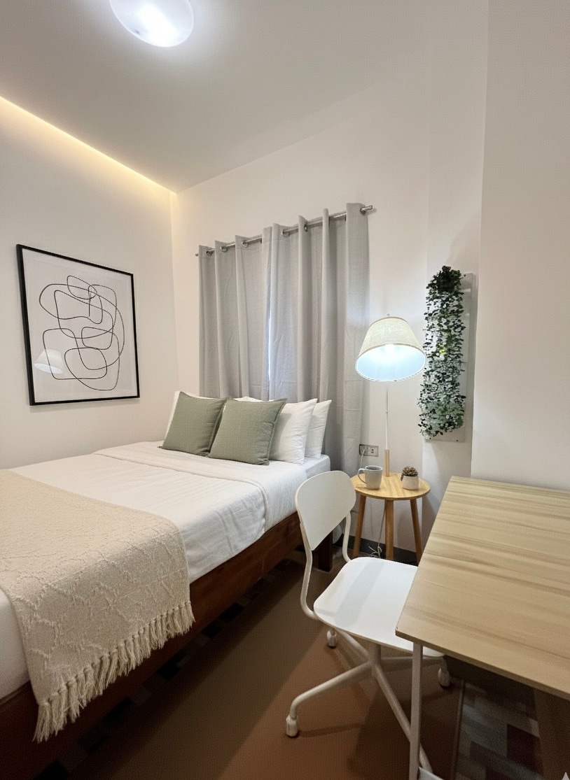 Unit tipe studio kami yang nyaman kini tersedia untuk sehari & seminggu 🌴 📍 Terletak di Purok 5, General Luna, di depan Haven Suites 🚗 Hanya 3-5 menit berkendara ke pantai, kafe, bar, dan restoran. ✨ Yang akan Anda nikmati: 🛏️ Tempat tidur ukuran queen ❄️ Kamar ber - AC lengkap Kamar mandi🚿 pribadi dengan pancuran air panas dan dingin serta bidet 🪑 Meja kerja 📶 Koneksi WiFi yang kuat Area memasak🍳 luar-ruang bersama 🧊 Kulkas & ketel listrik 🧴 Handuk disediakan dan perlengkapan mandi disertakan