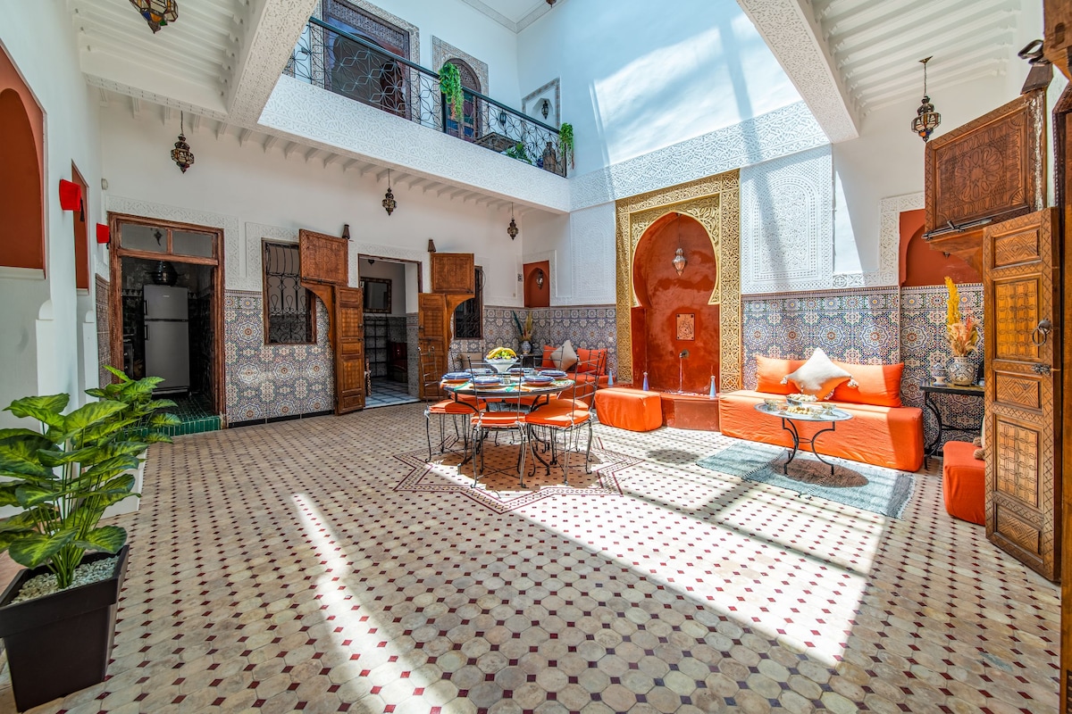 Dar Nurah adalah riad bergaya yang bisa menampung hingga 6 tamu, sangat nyaman untuk keluarga, teman, atau pasangan dengan maksimal 4 orang. Rumah selalu disewakan secara keseluruhan, jadi Anda akan menikmati seluruh riad untuk Anda sendiri dan tidak ada tamu lain yang akan hadir. Luas ruang keluarga sekitar 180 meter persegi. Ada 2 kamar tidur berperabot indah dengan kamar mandi dalam, ruang tamu dengan sofa bed, dan banyak area tamu terbuka. Di teras atap, Anda akan menemukan area makan untuk 4–6 orang.