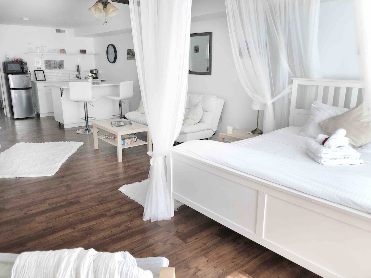 Ini adalah temuan yang benar - benar unik di Grand Bend. Terletak di jalan utama, loteng penthouse kami hanya beberapa langkah dari semua yang ditawarkan destinasi liburan ini termasuk pantai dan tempat makan terbaik di kota ini. Kata kuncinya adalah "kemewahan."( Anda tidak akan menemukan furnitur IKEA di tempat ini.) Langit - langit berkubah, perapian, lantai berpemanas, kamar mandi dalam, dan tempat tidur berukuran king yang nyaman menjadikan tempat ini permata sepanjang tahun. Tempat ini juga merupakan impian koki dengan kompor gas kelas komersial, ventilasi, dan kulkas.