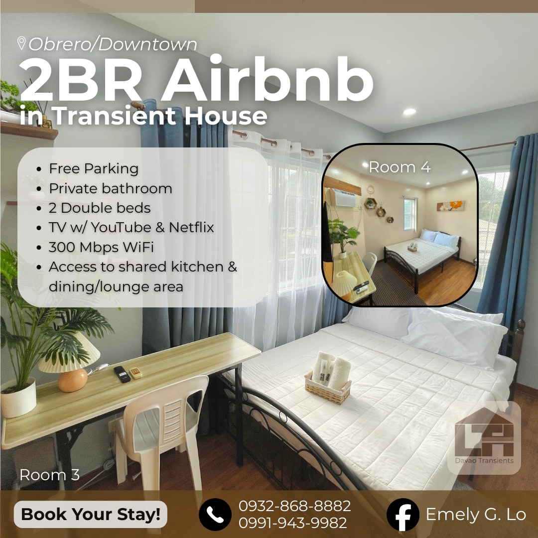 2BR dengan Kamar Mandi di Rumah Transient | Obrero 3&4
