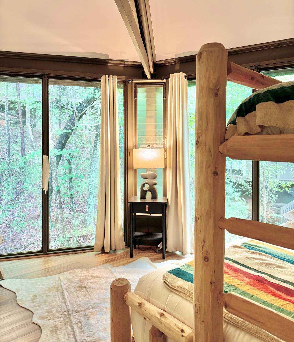 "Evermore" is a unique Treetopper designed for couples who desire a little more. Located in the gated resort style community of Big Canoe, "Evermore" sits on a hillside overlooking beautiful Lake Petit and McElroy Mountain. The interior features a plush King bed, large shower with rain shower head, heated tile floors, remote gas fireplace, remote controlled window treatments, smart tv, open airy kitchen with beautiful finishes. The hot tub is only a few steps away on the private terrace deck!