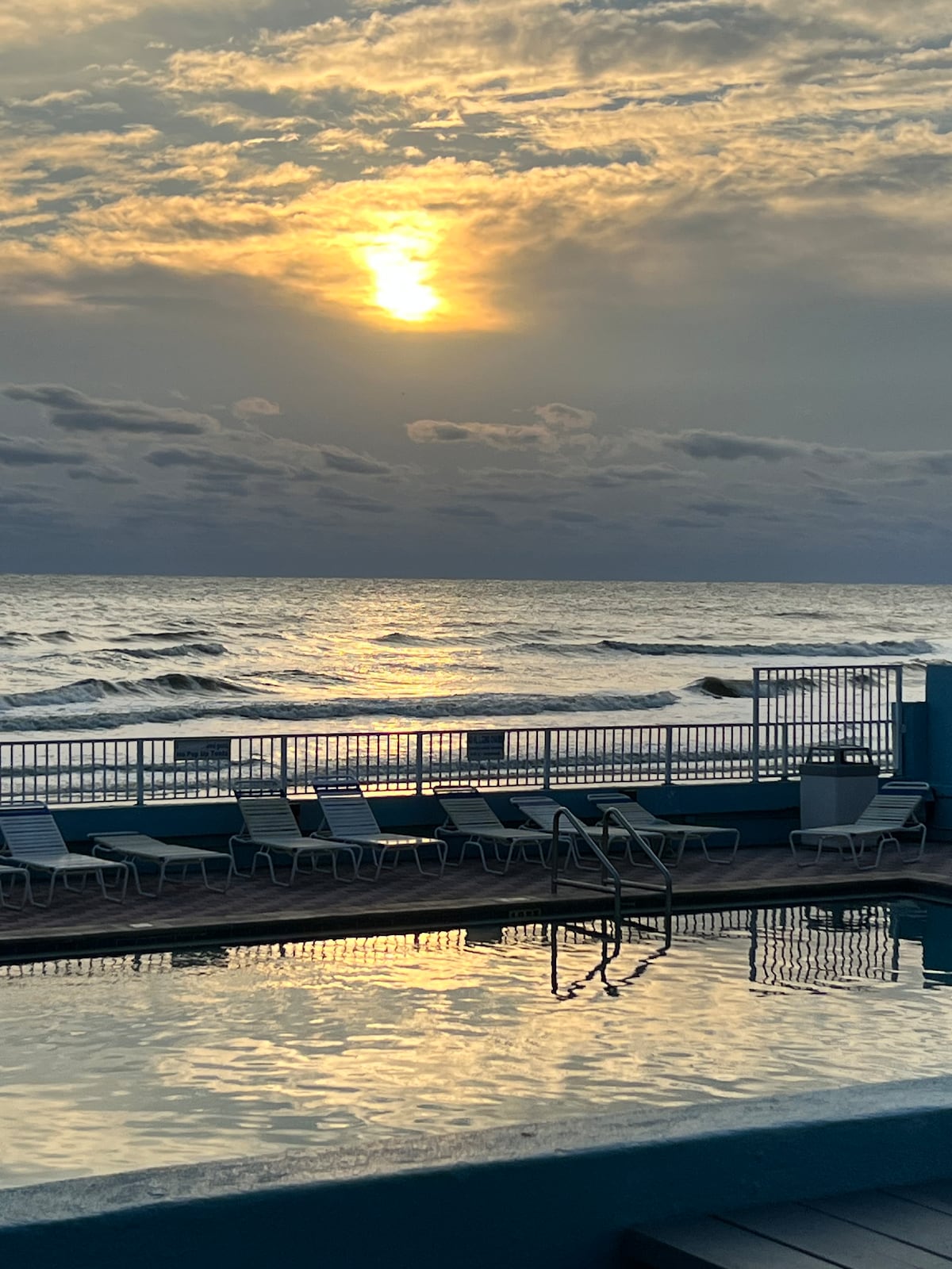 Anda sudah menemukannya! 🎆 Kondominium 🌅studio tepi pantai yang sempurna untuk menyaksikan 😎 dengarkan suara ombak yang indah🌊. Nikmati pantai🏖️, kolam renang luar ruangan ekstra besar🏊♀️, kolam renang 🔥 DALAM RUANGAN BERPEMANAS, BAR // MAKANAN yang terletak di dek kolam renang. Lokasi yang luar biasa dengan 🛒restoran toko kelontong 🍔🌭🥗🍕🍟🥞🍦🍭 & toko suvenir dengan mudah dalam jarak berjalan kaki. Sekitar 2 mil dari Daytona Beach Boardwalk & Bandshell (konser musik gratis 🎶pada Jumat & Sabtu malam (Unit bisa tidur 1 -4 orang) Pemilik adalah warga lokal & tidak sabar untuk bertemu dengan Anda. 🤗