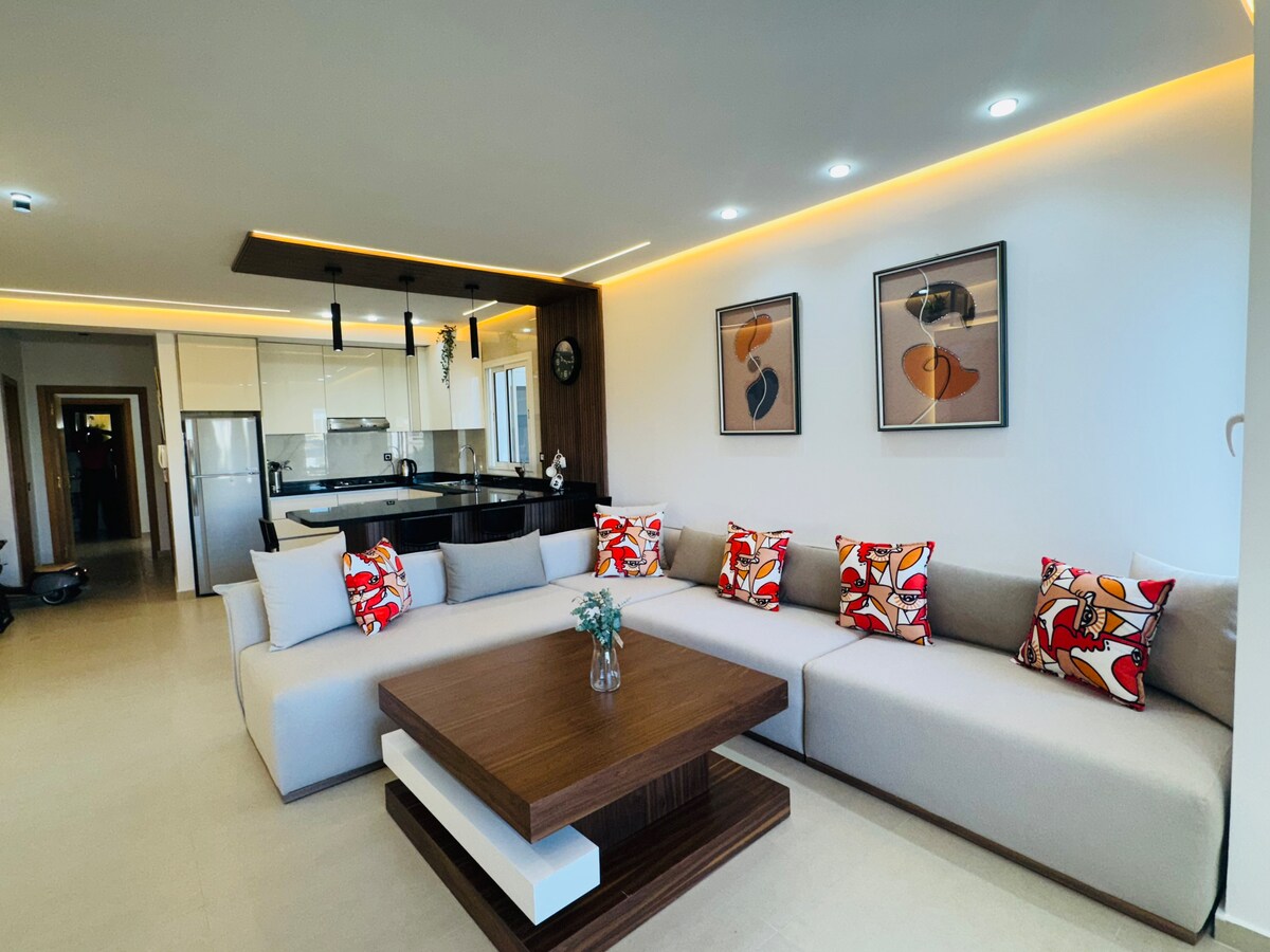 tempat yang tenang dan menghilangkan stres dengan sentuhan alam, Selamat datang di apartemen 2 kamar tidur kami di assilah : - di lantai 2, 500 m dari jalan raya A5, 5 menit ke pusat dan pantai, - kolam renang, - mengawasi anak-anak Anda di kolam renang dari balkon; - router wifi seluler; TV android 55, -2 kamar yang luas + 3 tempat tidur satu untuk bayi; - dapur lengkap dengan kompor listrik; - bisa menerima hingga 6 tamu + 1 tempat tidur untuk bayi; - Keamanan 24/7 + parkir gratis; - toko kelontong di dalam - Taman terawat - area bermain anak