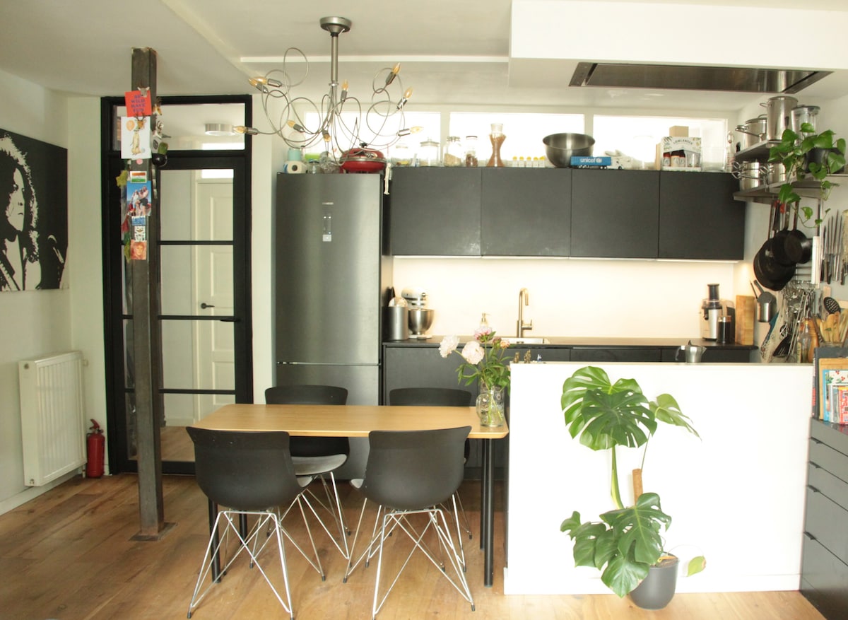 - Seluruh apartemen untuk Anda sendiri - 2 kamar tidur terpisah (satu dengan tempat tidur ganda dan satu dengan 2 single) dengan 2 pancuran dan 2 toilet - Dapur terbuka dengan peralatan modern (tetapi tidak ada kompor), ruang tamu dan ruang makan - Jalan yang tenang di jantung area yang ramai - 1880 National Listed “Canal House” - baru direnovasi - Berdekatan dengan Hortus (Kebun Raya); jarak berjalan kaki ke pusat kota, Waterlooplein (pasar loak tertua), Sungai Amstel, Museum Hermitage dan Kebun Binatang Artis - Peta favorit lokal yang dibuat khusus