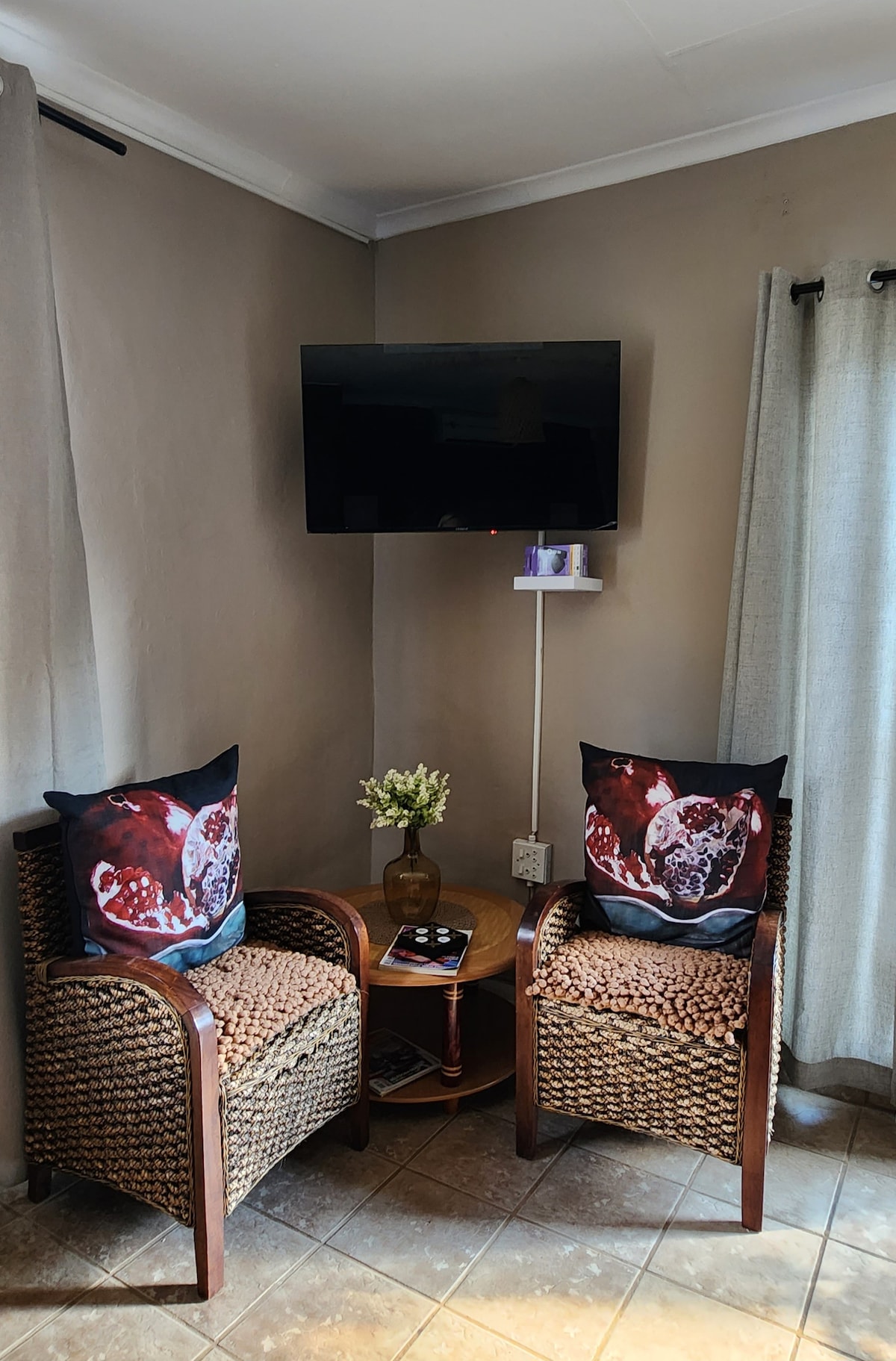 Flatlet mewah pribadi yang terhubung dengan rumah kami. Tempat ini dilengkapi dengan tempat tidur queen, dapur kecil, dan AC. Dapur kecil ini memiliki set lengkap barang pecah belah, peralatan makan, ketel, pemanggang roti, kompor induksi, microwave, air fryer, dan kulkas bar tersembunyi. Kamar mandi memiliki pancuran seperti spa yang besar dan suite toilet yang lembut dan dekat. Wifi gratis dan akses gratis ke Netflix, Prime Video, dan Showmax. Tamu bisa masuk ke akun DSTV mereka sendiri.