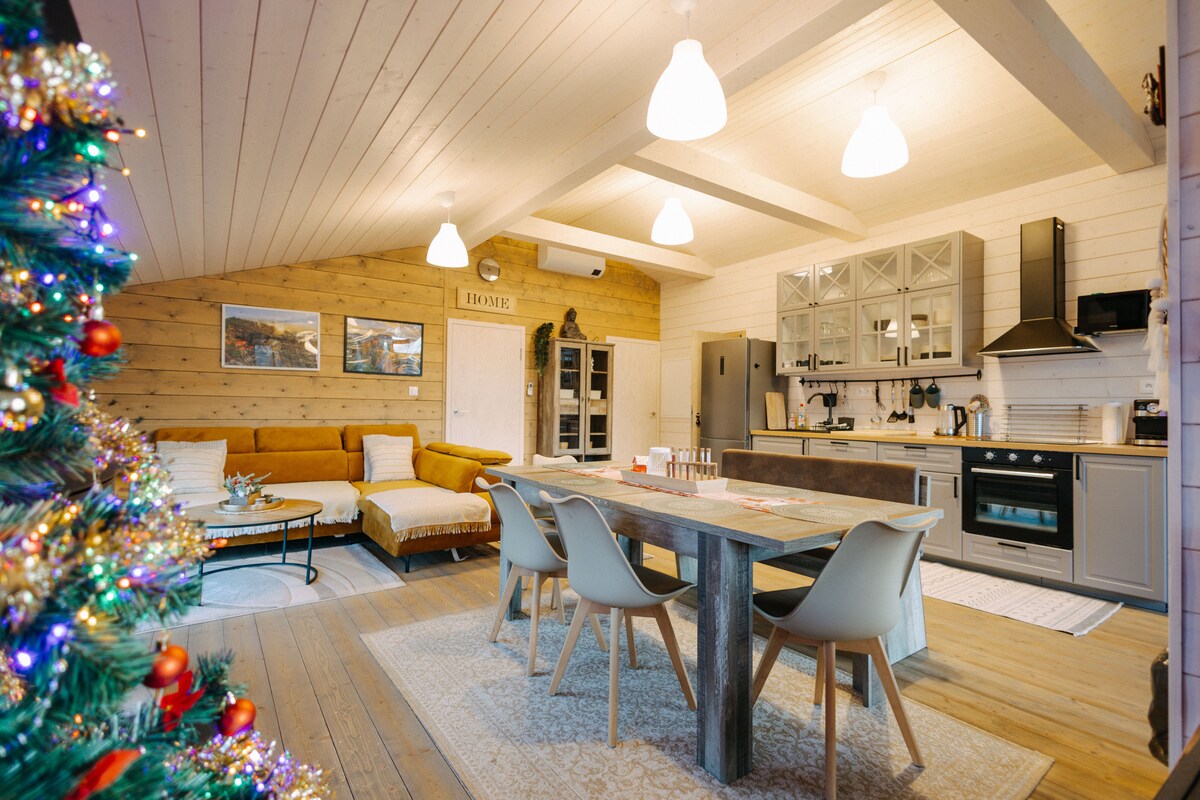 Koran: Skiing is open Kami dengan senang hati akan mempersembahkan "Dream House". Rumah yang indah dan modern dengan tiga kamar tidur luas ini nyaman menampung hingga 8 tamu dan menawarkan privasi mutlak dengan kesejahteraan mewah. Di teras Anda bisa bersantai di bak mandi air panas listrik dan panas yang mewah, sementara untuk istirahat yang sempurna ada sauna desain dengan pemandangan pegunungan yang indah. Kombinasi bangunan kayu modern dan interior bergaya menciptakan lingkungan ideal untuk Liburan Impian yang sesungguhnya.