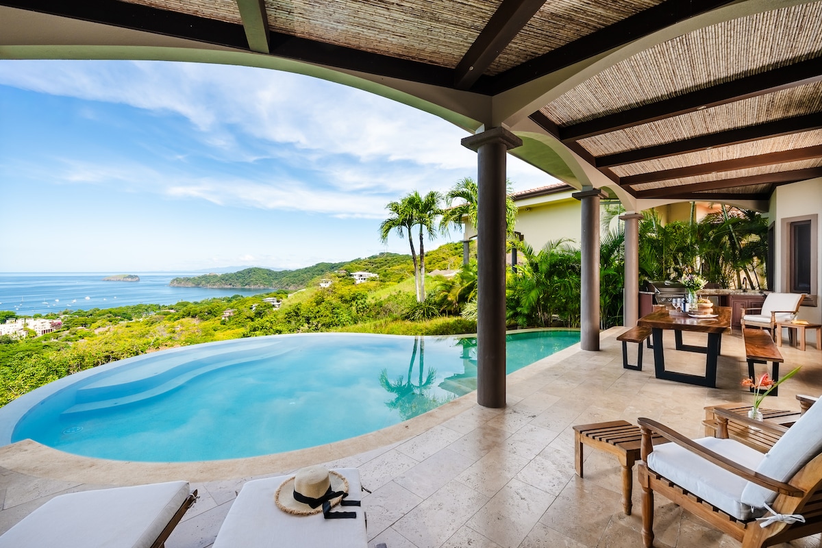 Beautiful contemporary home with breathtaking ocean and mountain views, a private infinity pool, high-speed 100 Mbps internet, and hot water. Spacious gated property with a perimeter wall and electric gate for privacy and security. Just a short 450-meter walk to the beach. Perfect for relaxing stays in a quiet neighborhood. Only 5 minutes by car or 20 minutes walking to downtown Playas del Coco. Liberia International Airport is 24 km away, with direct flights from the US and Canada.
