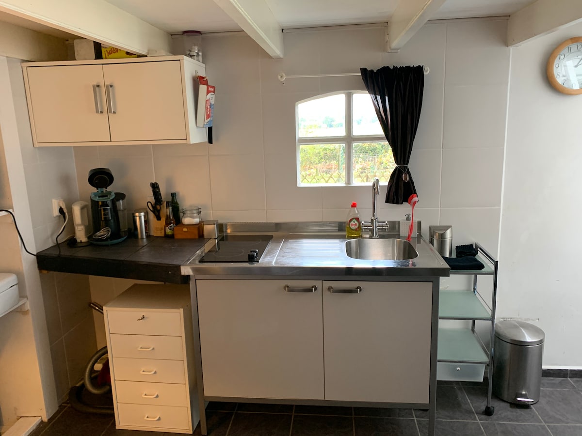 Een tiny-house in een voormalige bierbrouwerij. Gelegen op een kaasboerderij op het landgoed Twickel. Dit kleine huisje is van alle gemakken voorzien, inclusief een volledig uitgeruste keuken. TV en WIFI aanwezig. Ontbijt mogelijk na contact. Het huisje heeft een eigen terras met een omheinde tuin waar je in de rust en stilte kunt genieten van het mooie vrije uitzicht over de weilanden. Ook is er een cobb bbq aanwezig om bij mooi weer buiten een lekkere maaltijd te bereiden.